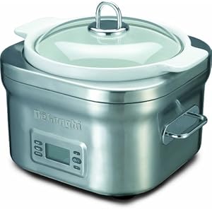 Designed for busy people, the De'Longhi 5-Qt Slow Cooker not only cooks to perfection, but looks good while doing so; just set it and go. The sleek, compact stainless steel design is accompanied by a white servable ceramic bowl, so you have less to clean up. You can be confident knowing that your meal will end up exactly as planned, no over cooking or undercooking with the 10-hr digital countdown timer; perfect for long work days or busy days running the kids around to after school activities. The compact design is small enough to still allow for ample counter space, so there is no sacrifice there. If the kids like to help with cooking there's no need to worry about them burning themselves, the cool touch stainless handles provide you some piece of mind. Cleanup will be a breeze with the dishwasher safe servable bowl and tempered glass lid.